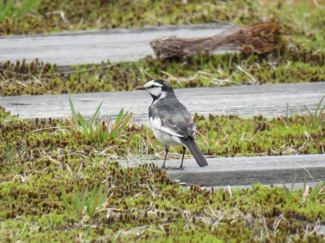 通りすがりのハクセキレイも花に誘われてお散歩のようです。