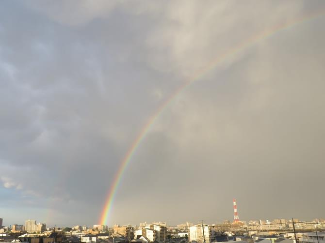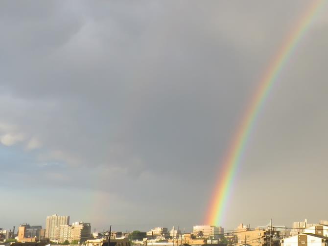 虹の外側にごくわずかですが、もう一つの虹「副虹」がかかっていることも観察できました。