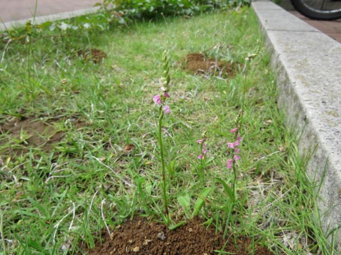 比較的背が高いネジバナが、三本隣り合って咲いていましたが、