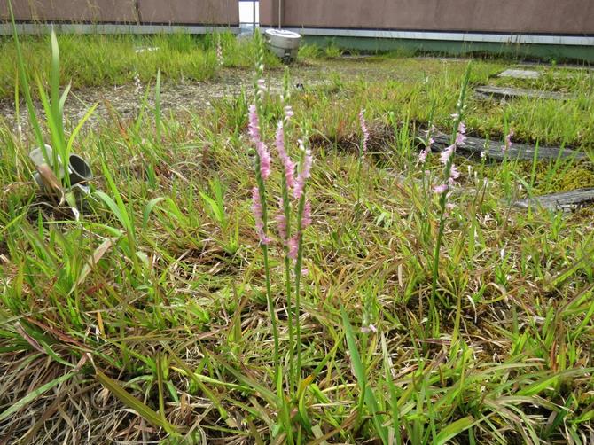 屋上にたくさんのネジバナが咲いているのを発見しました。
