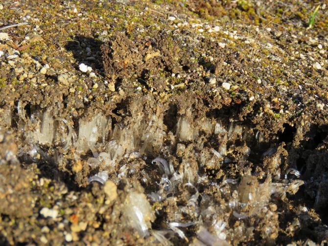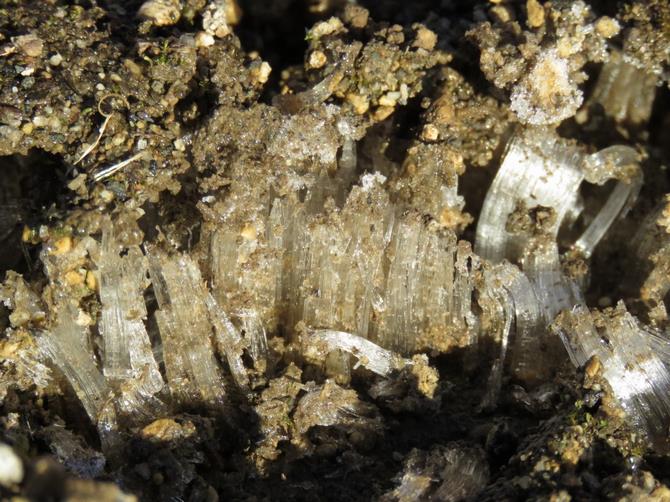 センター屋上ではまぶしい朝日を浴びてきらめく霜柱を観察することができました。