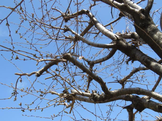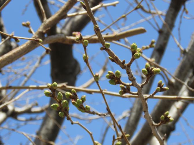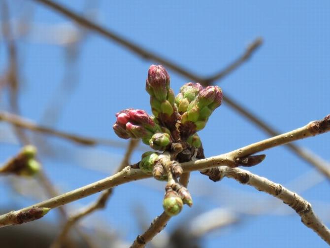 センター敷地内のさくらのつぼみは大きく膨らみ、ピンク色になっているものもありました。