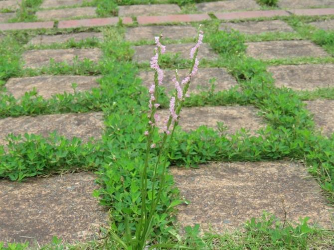 約一週間後の13日、梅雨本番となり、ネジバナの花が下から上へと咲き進んだ様子が観察されました。