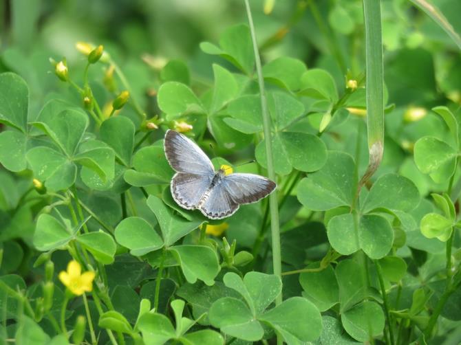 敷地内の草むらを仲良く飛びまわる「ヤマトシジミ」とみられる蝶の姿が観察されました。