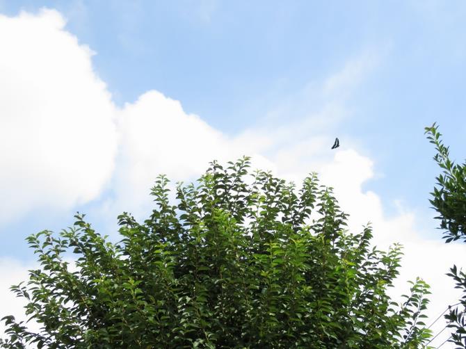 「アオスジアゲハ」とみられる蝶を発見しました。