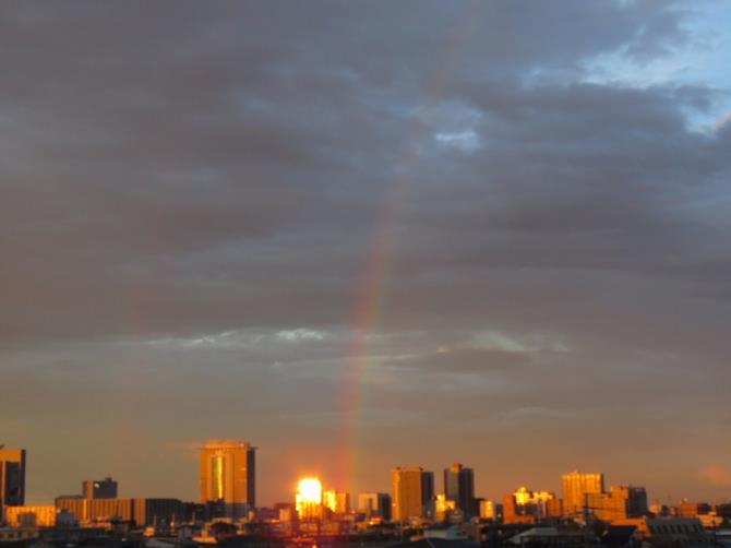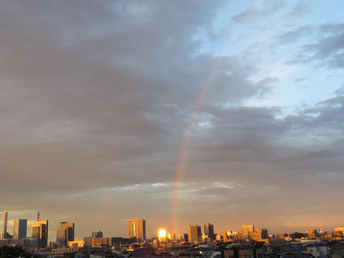 さいたま新都心方面の地上付近に、短いながらも色の濃い虹「株虹」が観察されました。