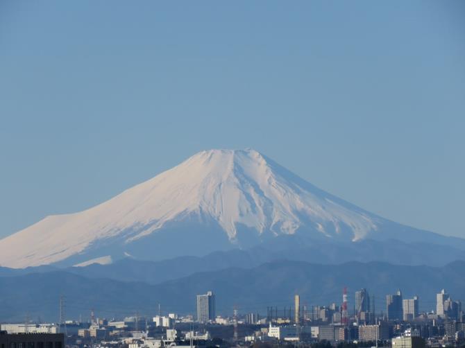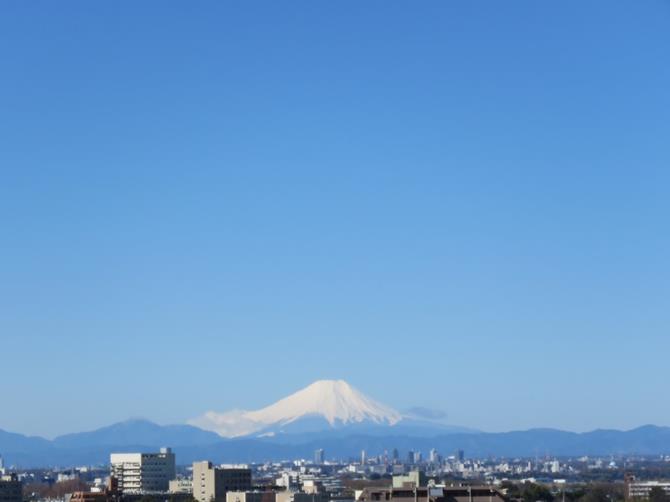 雲一つない青空のもと、白く雪化粧した富士山を観察することができました。