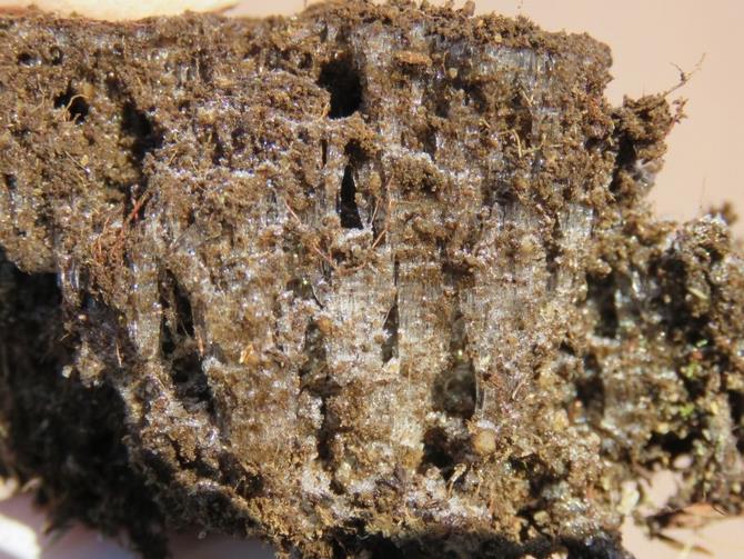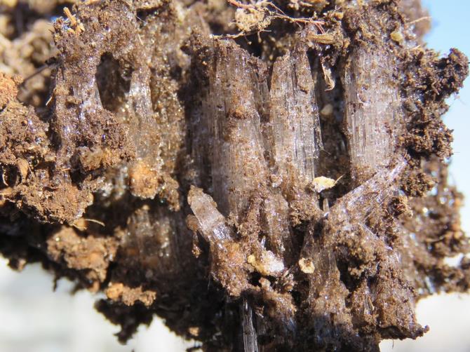 そして足元には、冬の風物詩「霜柱」が観察されました。