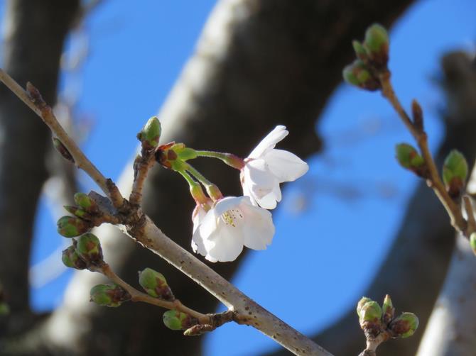 さらに観察を進めると、開花しているサクラの花を見つけることができました。