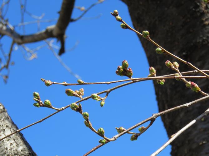 そして開花の発表が遅れていたサクラでは、大きく膨らんで色づくつぼみが観察されました。