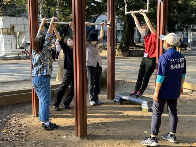 すこやか運動教室は、公園等に設置されている「すこやか遊具」を使用して、ふらつきや転倒を予防するための運動などを行う楽しい教室です。